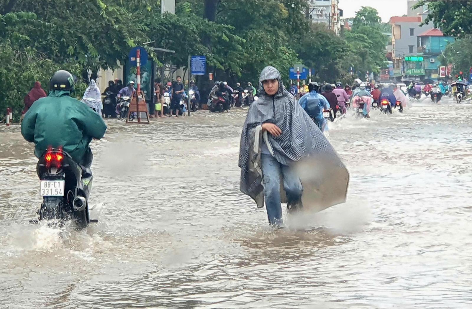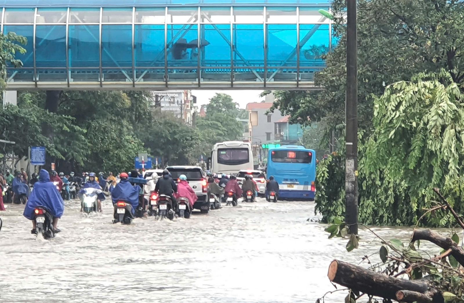 Tại khu vực nội thành, do mưa lớn trong chiều và đêm 9/9, nên nhiều tuyến đường ở nhiều nơi trên địa bàn thành phố Hà Nội bị ngập sâu.