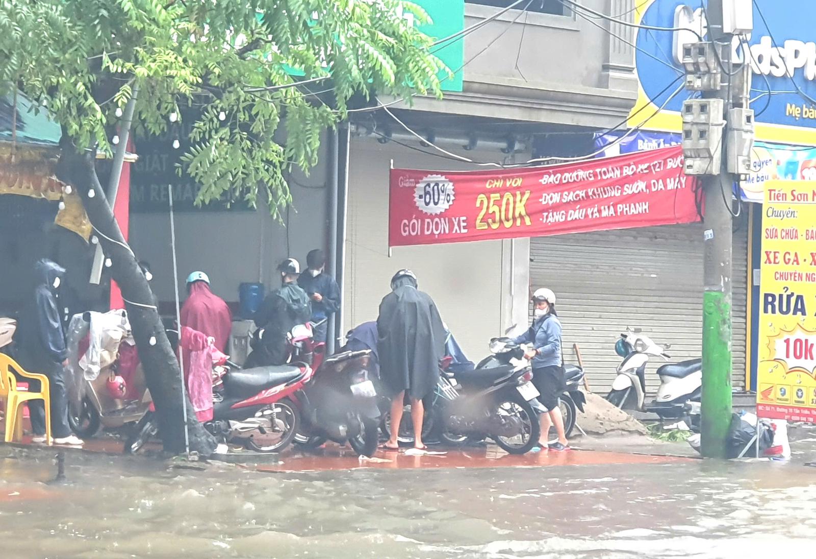 “Do ngập sâu nên chỉ những xe ô tô gầm cao, xe tải, xe buýt mới đi qua được. Với xe máy gầm cao người dân dắt bộ đi ven đường, xe gầm thấp không thể đi qua. Nhiều xe chết máy la liệt bên đường”, anh Quân cho biết.