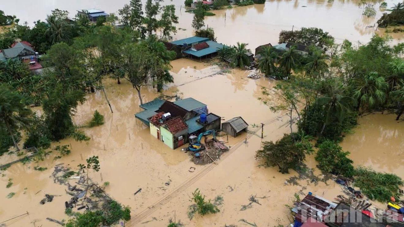 Nhiều khu dân cư ở Nông Cống (Thanh Hóa) bị nước lũ bao vây. Ảnh: Văn Thanh