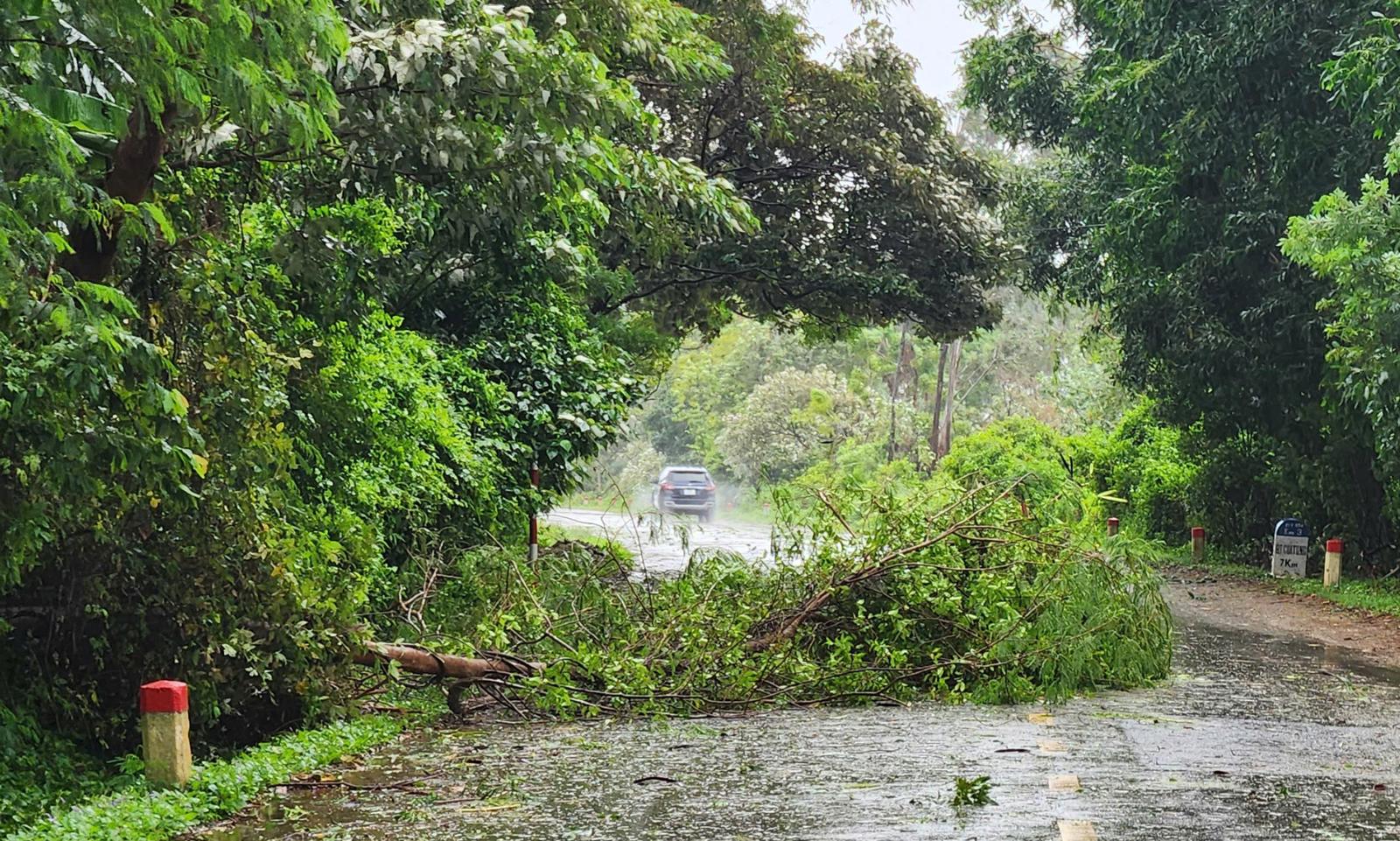 Cây xanh ngã đổ dọc các tuyến đường ở các huyện ven biển. Ảnh: Minh Tân