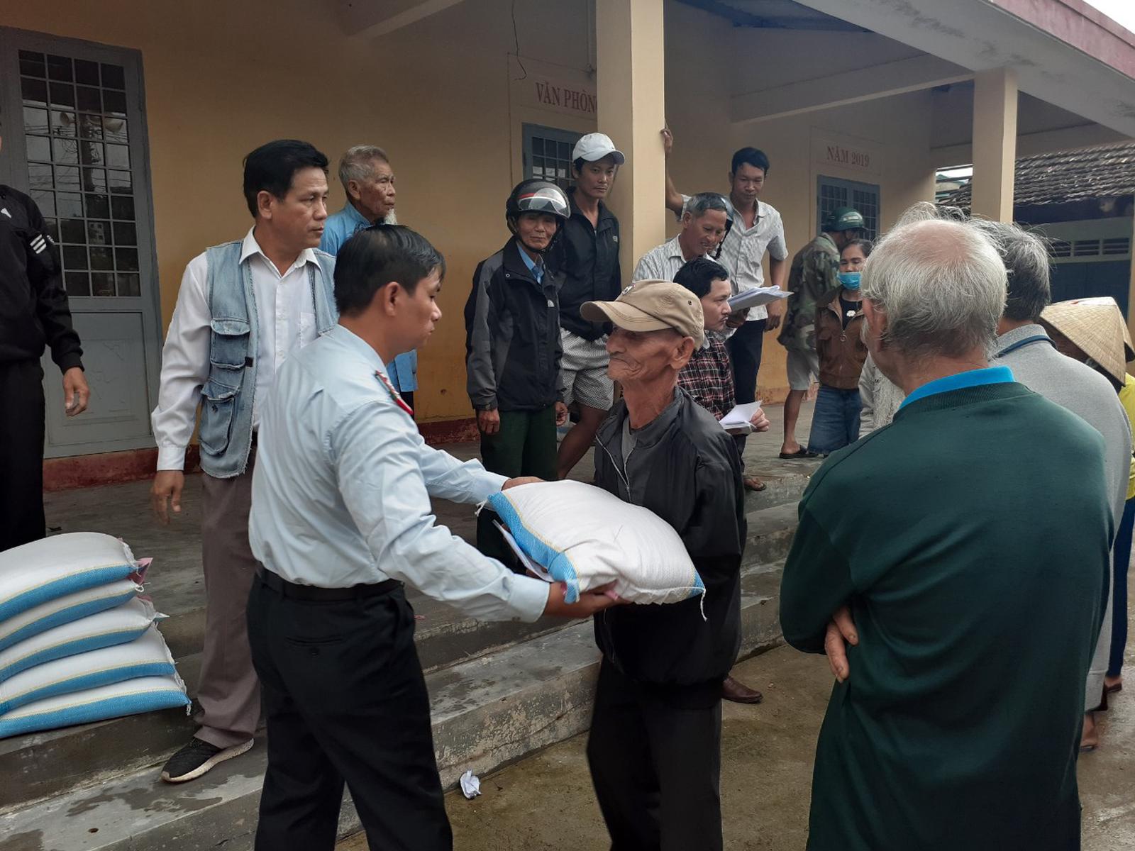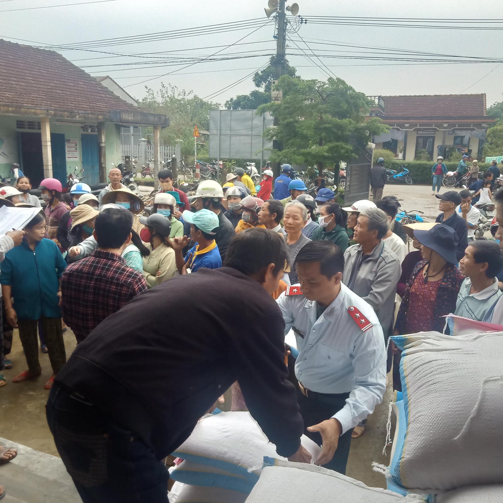 Ngay từ sáng sớm 8/11, đông đảo bà con ở thôn Vĩnh An, xã Phong Bình đã có mặt tại hợp tác xã để nhận quà cứu trợ. Lần lượt từng người, trưởng thôn đọc đến hộ nào hộ đấy lên nhận quà cứu trợ, không chen lấn, xô đẩy, nhiều người nước mắt rơm rớm khi được nhận được những phần quà ý nghĩa này.