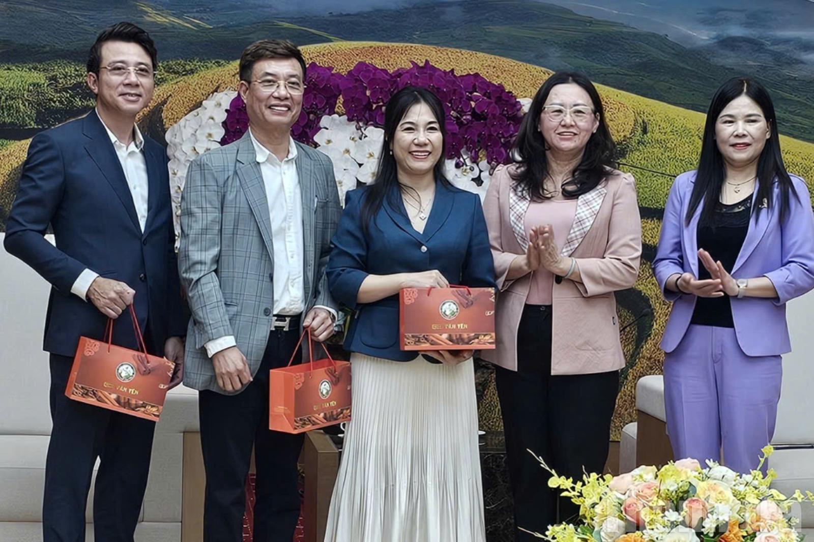 Lãnh đạo Báo Thanh tra cùng các đơn vị tài trợ nhận quà lưu niệm, thể hiện tình cảm gắn kết trong chương trình an sinh xã hội tại Lào Cai. Ảnh: Bùi Bình