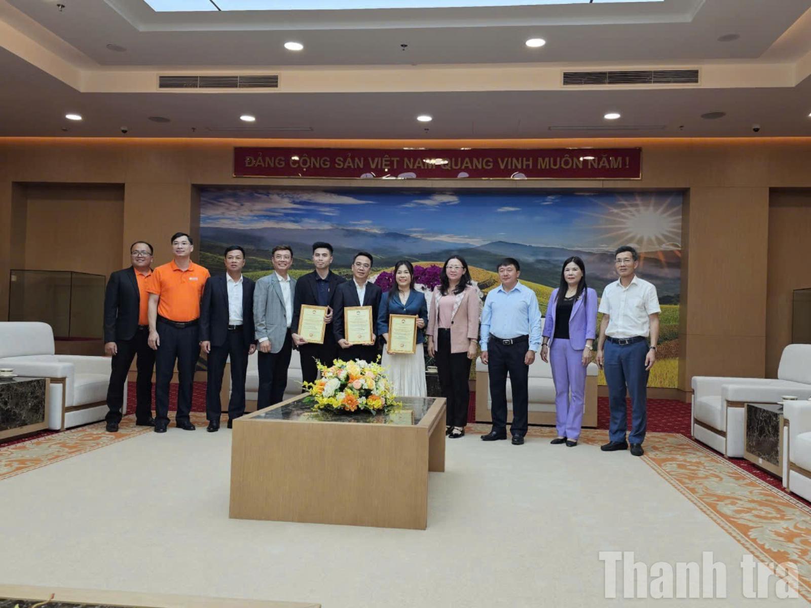 Lãnh đạo tỉnh Lào Cai trao tặng giấy chứng nhận cảm ơn các đơn vị đồng hành vì người nghèo xã Hạnh Phúc. Ảnh: Bùi Bình