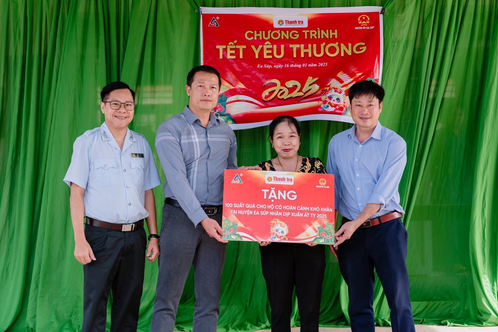 Sáng 16/1, Báo Thanh tra đã phối hợp với Công ty Cổ phần Đầu tư khoáng sản Bắc Tây Nguyên và Huyện Uỷ Ea Súp tổ chức chương trình "Tết yêu thương", trao tặng 100 suất quà cho hộ nghèo tại xã đặc biệt khó khăn Cư Kbang, thuộc huyện biên giới Ea Súp (Đắk Lắk).