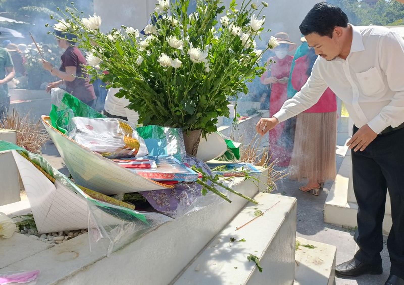 Đại diện Công ty Cổ phần Hỗ trợ Đầu tư & Phát triển Giáo dục Quốc tế VES thắp hương tri ân các anh hùng liệt sĩ tại Ngã ba Đồng Lộc. Ảnh: Nguyên Dũng.