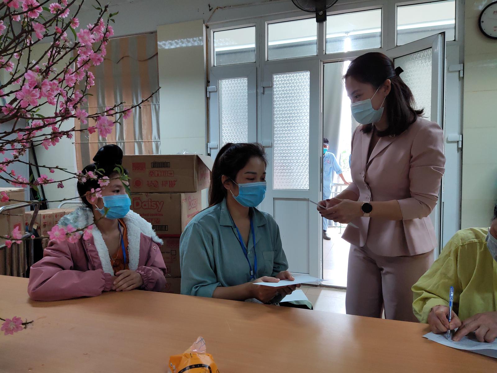 Phó Thư ký Chi hội Nhà báo Báo Thanh tra Nguyễn Kim Hồng chia sẻ, động viên bệnh nhân nghèo