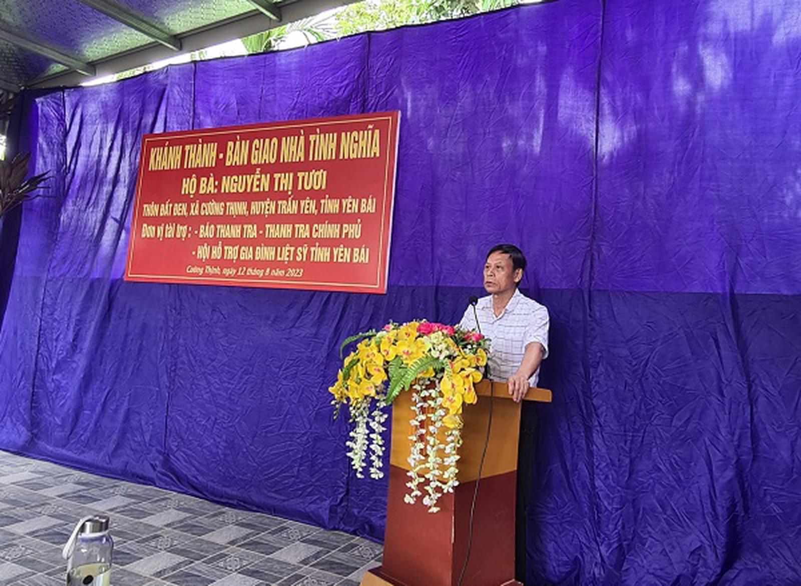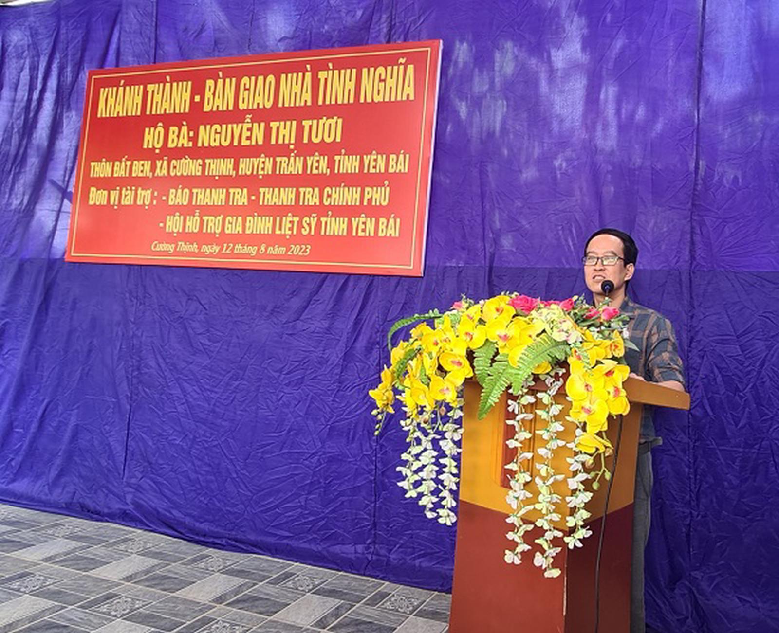 Phát biểu tại lễ trao nhà, ông Đỗ Công Định, Phó Tổng Biên tập Báo Thanh tra bày tỏ xúc động trước sự chu đáo trong công tác tổ chức cũng như sự đón tiếp nhiệt thành của gia đình thân nhân liệt sỹ. Ông Định cho biết, mỗi năm Báo Thanh tra đều cố gắng, trực tiếp, gián tiếp tham gia các hoạt động thiện nguyện, rất may mắn, năm nay Báo Thanh tra đồng hành cùng với Hội HTGĐLS tỉnh Yên Bái để tri ân các gia đình liệt sỹ, tri ân gia đình có công với cách mạng.