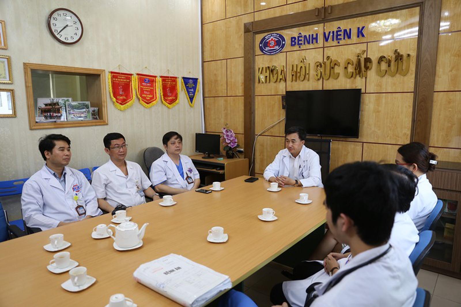 GS.TS Trần Văn Thuấn, Giám đốc Bệnh viện K chủ trì họp nhanh để đánh giá tình hình sức khoẻ của chị Liên. Ảnh: TH
