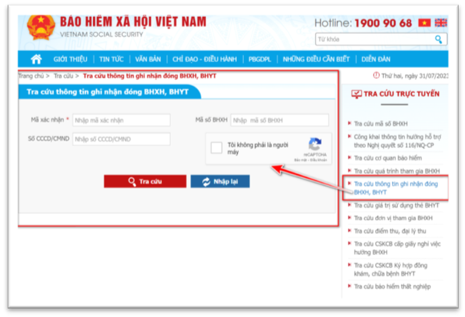 Bước 2: Chọn chức năng Tra cứu trực tuyến