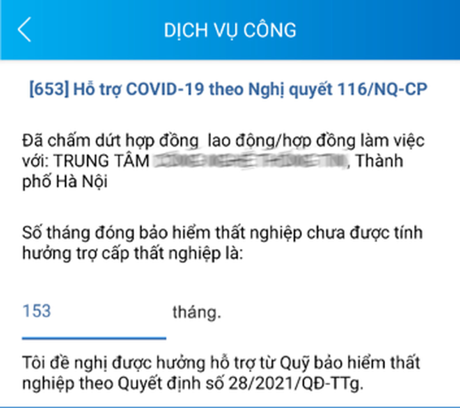 Bước 3: Chọn dịch vụ công Hỗ trợ COVID-19 theo Nghị quyết số 116/NQ-CP (hỗ trợ người tham gia BHTN bị ảnh hưởng bởi đại dịch Covid-19).