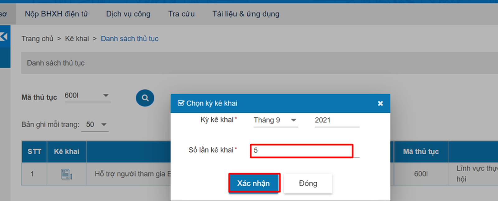 Bước 6: Chọn Kê khai rồi chọn Xác nhận.