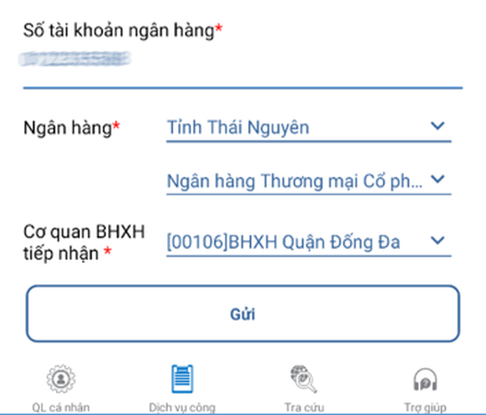 + Số tài khoản của người đề nghị nhận hỗ trợ.
