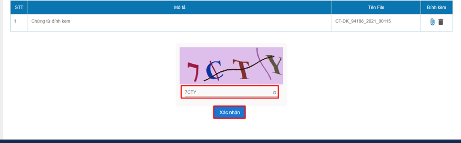 Bước 5: Nộp hồ sơ, nhập mã xác nhận như hình sau:
