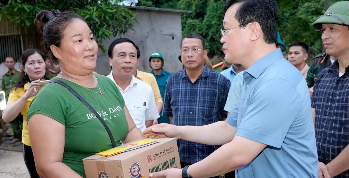 Tại hiện trường, Bí thư Tỉnh ủy Nguyễn Đức Trung đã đến tận nơi thăm hỏi các hộ dân có nhà bị lũ cuốn trôi hoàn toàn, chia sẻ những mất mát, thiệt hại cả về vật chất và tinh thần mà bà con đang gánh chịu. Lắng nghe tâm tư, nguyện vọng của người dân, đồng chí nhấn mạnh: “Tỉnh sẽ đồng hành, hỗ trợ bà con vượt qua giai đoạn khó khăn này, tuyệt đối không để ai thiếu ăn, thiếu mặc, không có nơi ở”.
