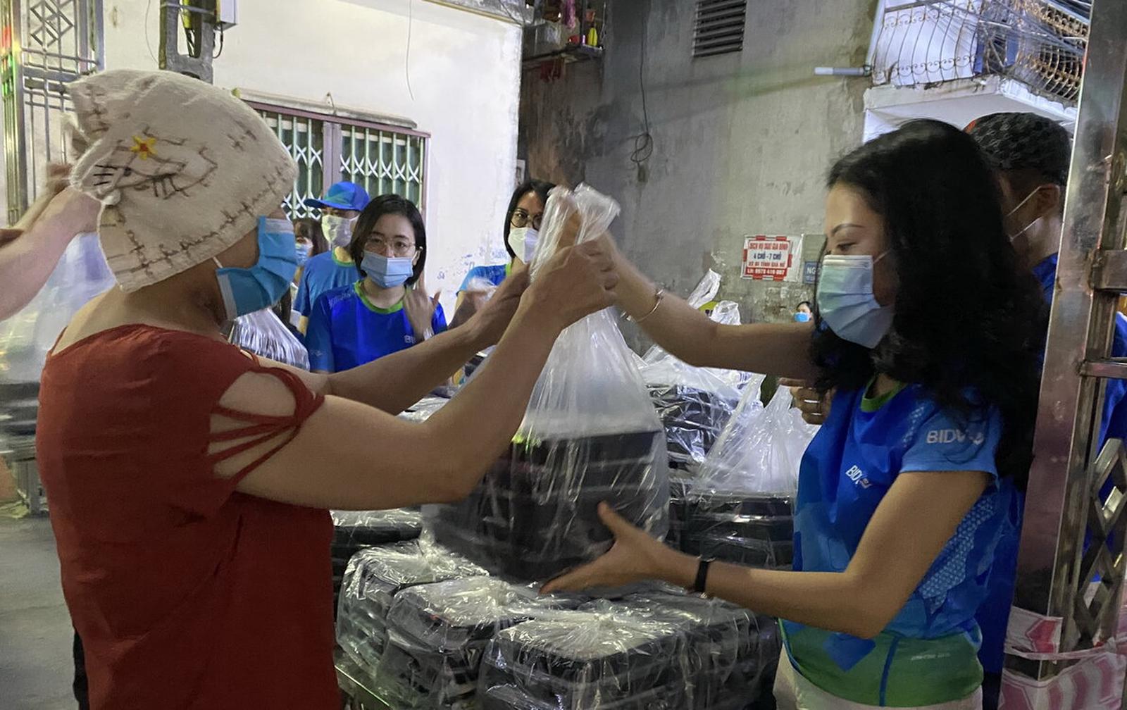 BIDV trao 18.000 suất cơm tặng đồng bào khó khăn tại TP. Hà Nội. Ảnh: PV