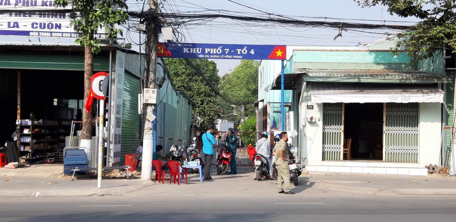 Một tổ thuộc khu phố 7 của phường Phú Hòa, TP Thủ Dầu Một được lực lượng chức năng lập chốt kiểm tra. (Ảnh: PD)