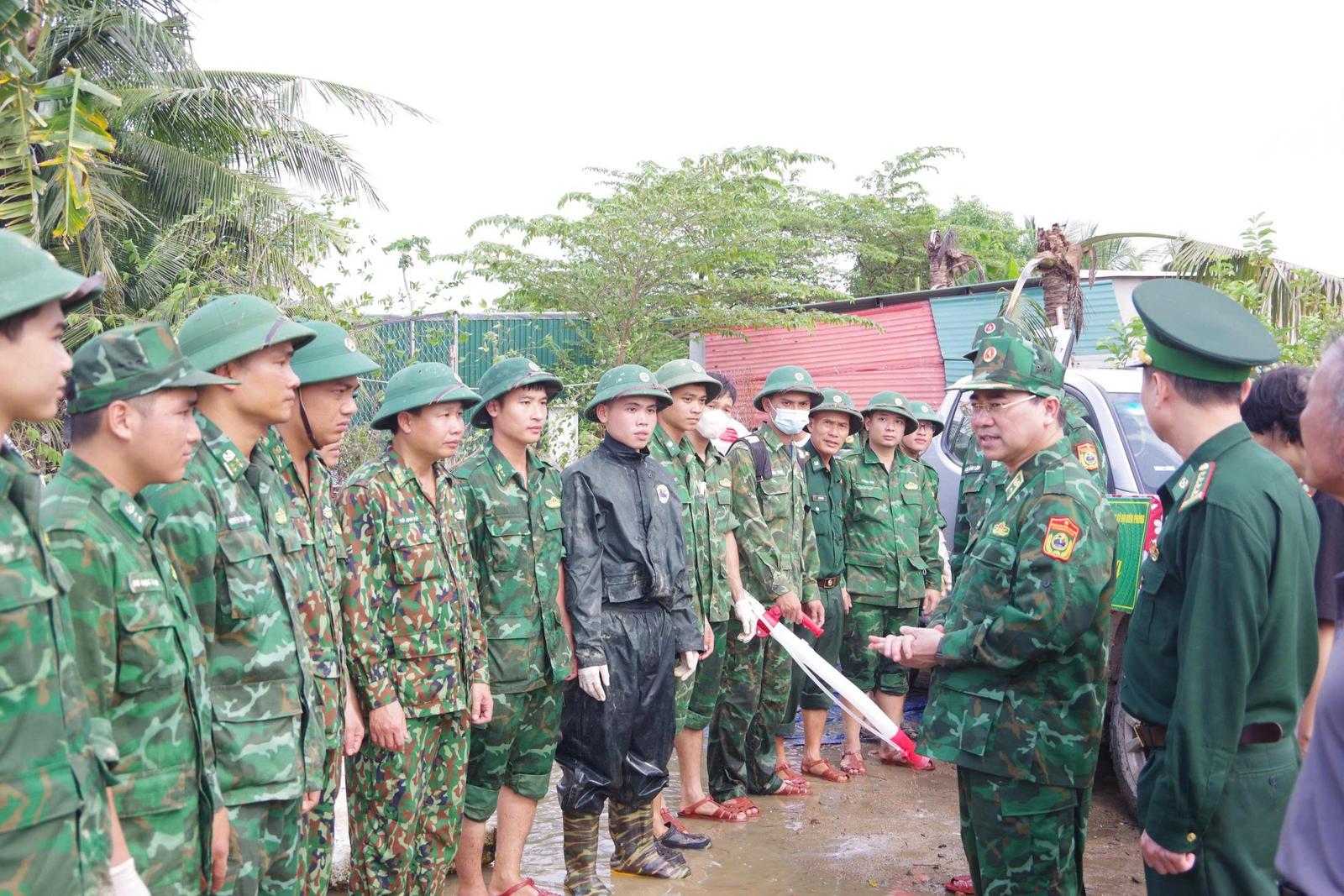 Thiếu tướng Võ Tiến Nghị yêu cầu các đơn vị tiếp tục bám sát địa bàn, chủ động tham gia hỗ trợ, bảo đảm không để người dân thiếu đói, thiếu chỗ ở an toàn.