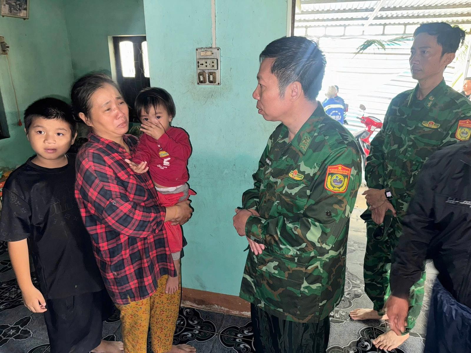 Đại tá Nguyễn Doãn Hoà, Chính ủy Bộ đội Biên phòng tỉnh Khánh Hòa trực tiếp đến thăm hỏi và động viên các gia đình quân nhân chịu thiệt hại nặng nề sau mưa lũ. Ảnh: BĐBP Khánh Hòa
