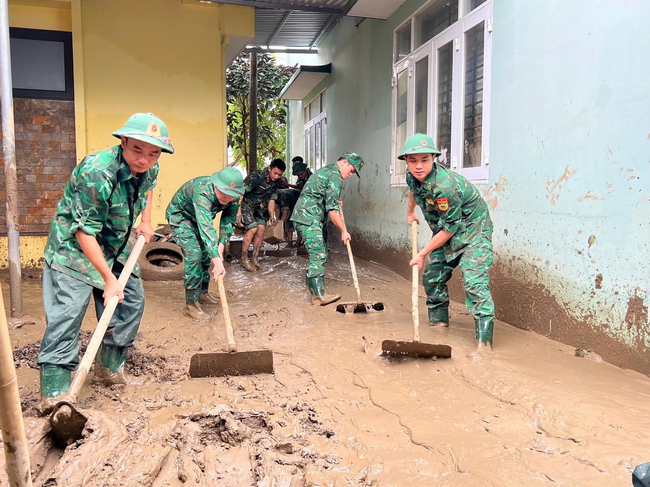 Song song với công tác cứu trợ, cán bộ, chiến sĩ cũng được huy động đến hỗ trợ dọn dẹp vệ sinh, khắc phục hậu quả sau lũ. Qua đó đã giúp hơn 20 trường học, trung tâm y tế và trên 100 nhà dân thu gom bùn đất, sắp xếp lại đồ đạc, đảm bảo điều kiện để người dân sớm ổn định sinh hoạt, các cơ sở giáo dục y tế nhanh chóng hoạt động trở lại.