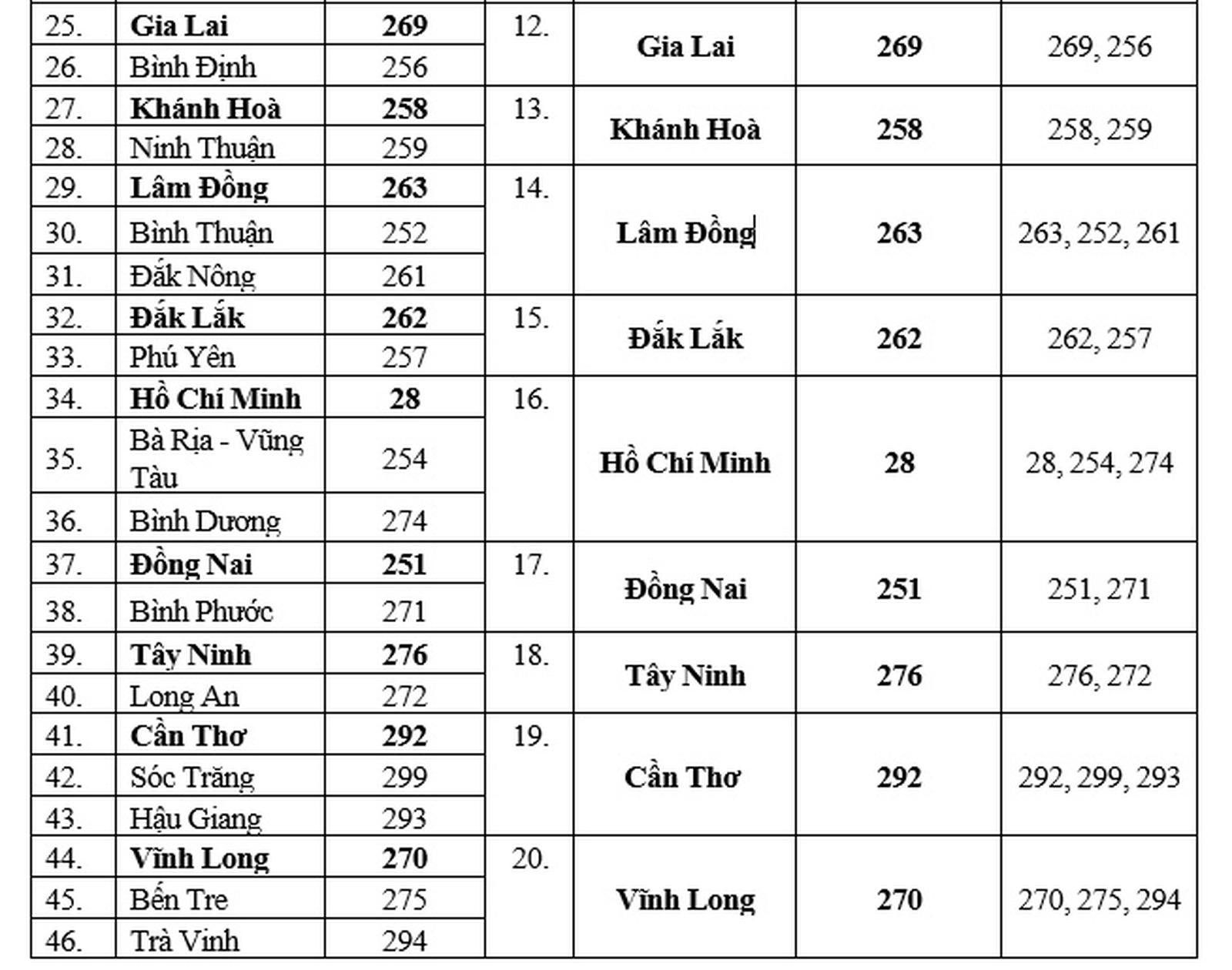 Mã vùng các tỉnh, thành phố trước sắp xếp (52 Tỉnh/TP) và Mã vùng dự kiến sau sắp xếp (23 tỉnh/TP)