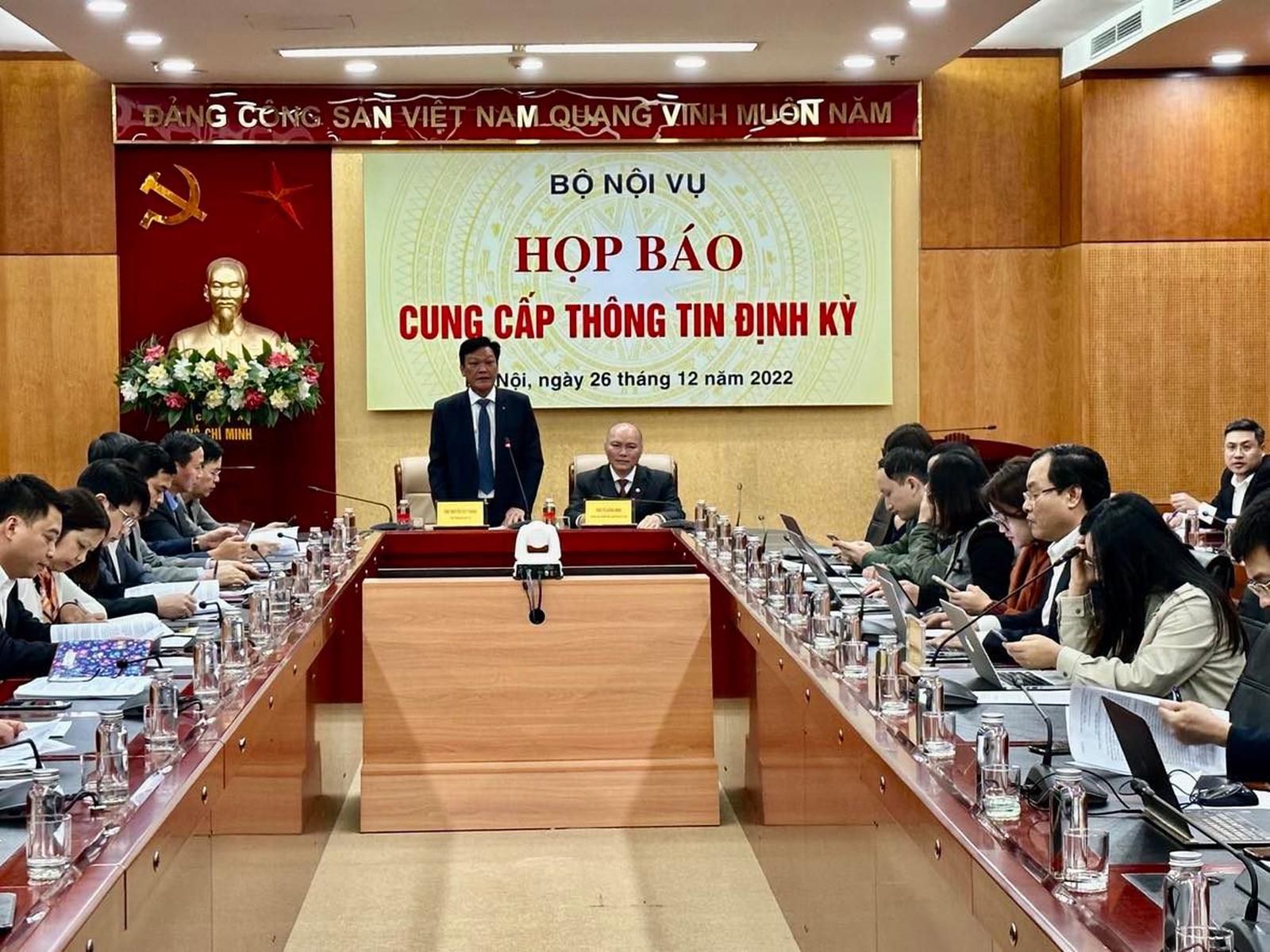Chiều 26/12, Bộ Nội vụ họp báo cung cấp thông tin định kỳ cho báo chí. Thứ trưởng Bộ Nội vụ Nguyễn Duy Thăng chủ trì buổi họp báo.