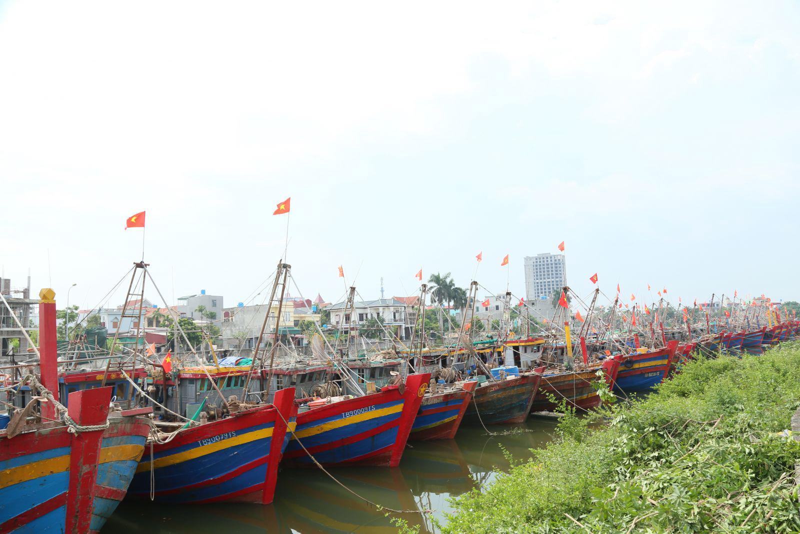 100% các phương tiện tàu thuyền trên địa bàn hai huyện Thái Thụy, Tiền Hải đã vào nơi tránh trú bão an toàn. Ảnh: TĐ