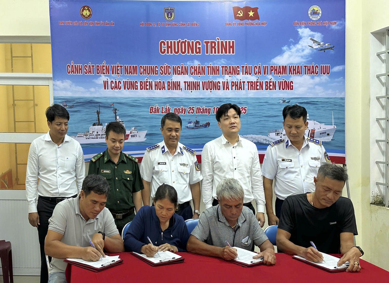 Tại chương trình, Hải đoàn 32, Bộ Tư lệnh Vùng Cảnh sát biển 3 đã tuyên truyền, phổ biến pháp luật về phòng, chống khai thác thủy sản bất hợp pháp, không khai báo và không theo quy định (IUU) đến hơn 300 ngư dân trên địa bàn. Cùng với đó, tổ chức cho các chủ tàu cá, thuyền trưởng, thuyền viên ký cam kết không vi phạm IUU và khám bệnh, phát thuốc miễn phí cho hơn 150 lượt ngư dân, đối tượng chính sách.