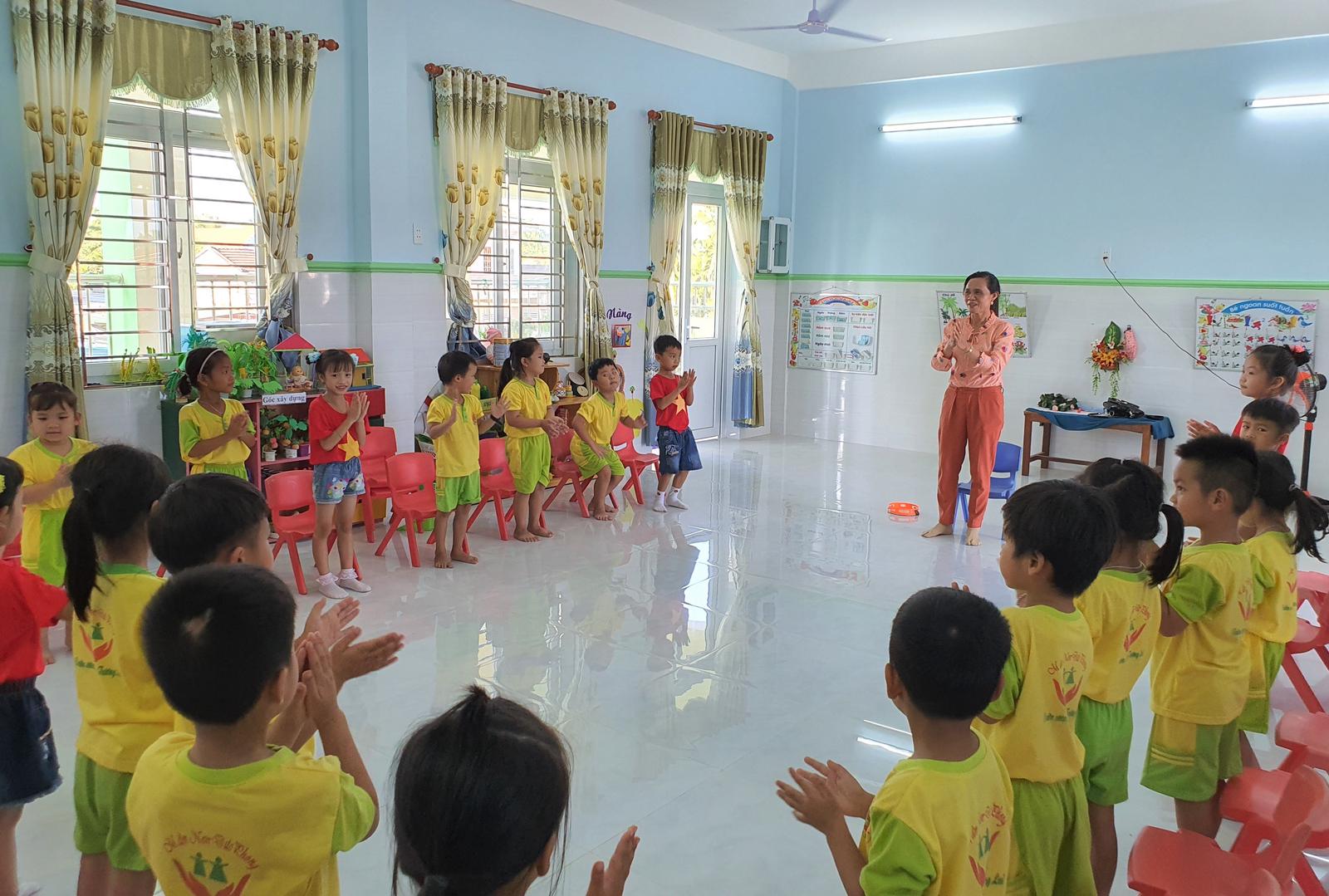 Tiết mục văn nghệ chào mừng có trường mới do các em học sinh lớp chồi của trường biểu diễn