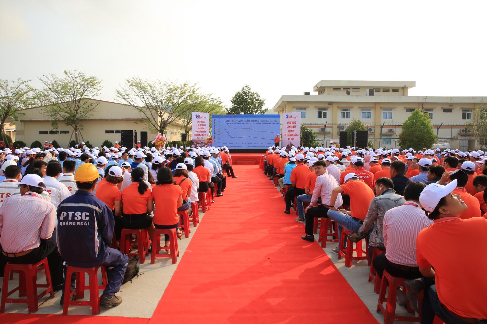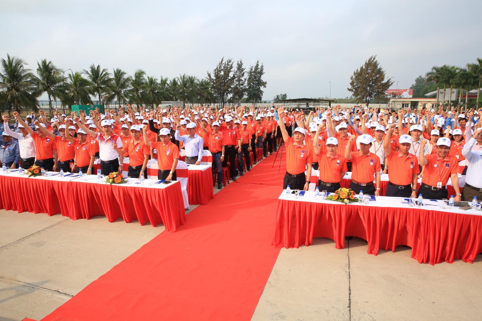 Tập thể lãnh đạo, người lao động BSR và nhân sự nhà thầu thể hiện quyết tâm vận hành NMLD Dung Quất an toàn, ổn định với hô vang khẩu hiệu: “Đi làm - An toàn, Làm việc - An toàn và Về nhà - An toàn”