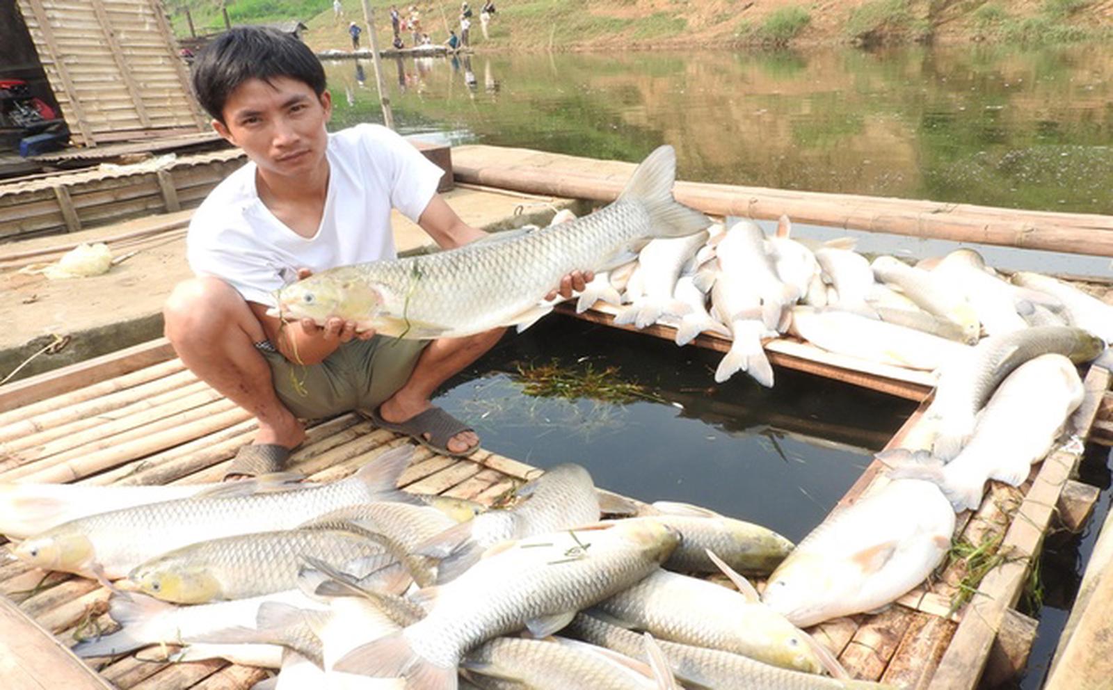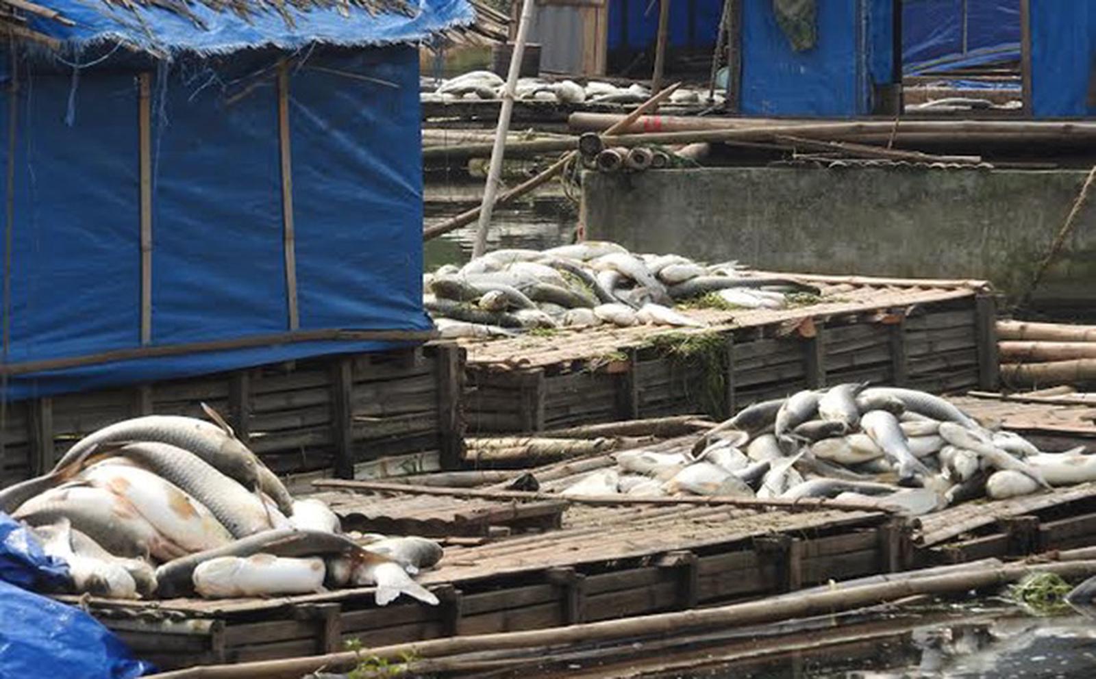 Hàng loạt cá lồng nuôi của dân nằm phơi bụng do nước bị ô nhiễm. Ảnh: Văn Thanh