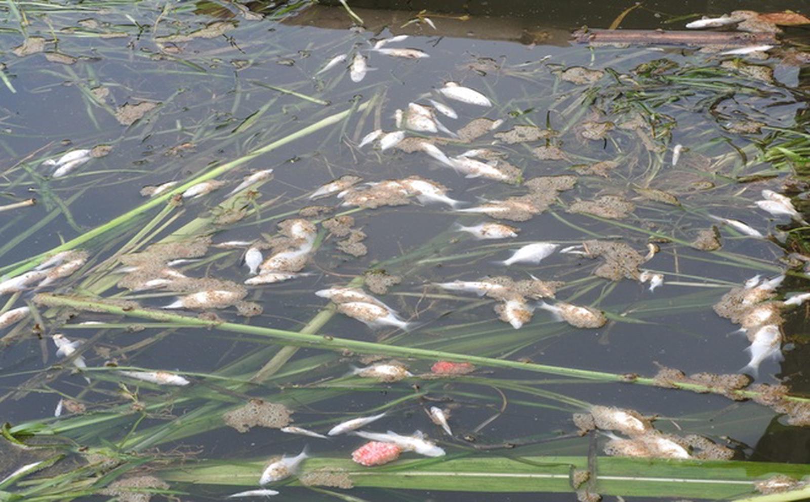Cá to, cá nhỏ đều chết do nguồn nước bị ô nhiễm nặng. Ảnh: Văn Thanh