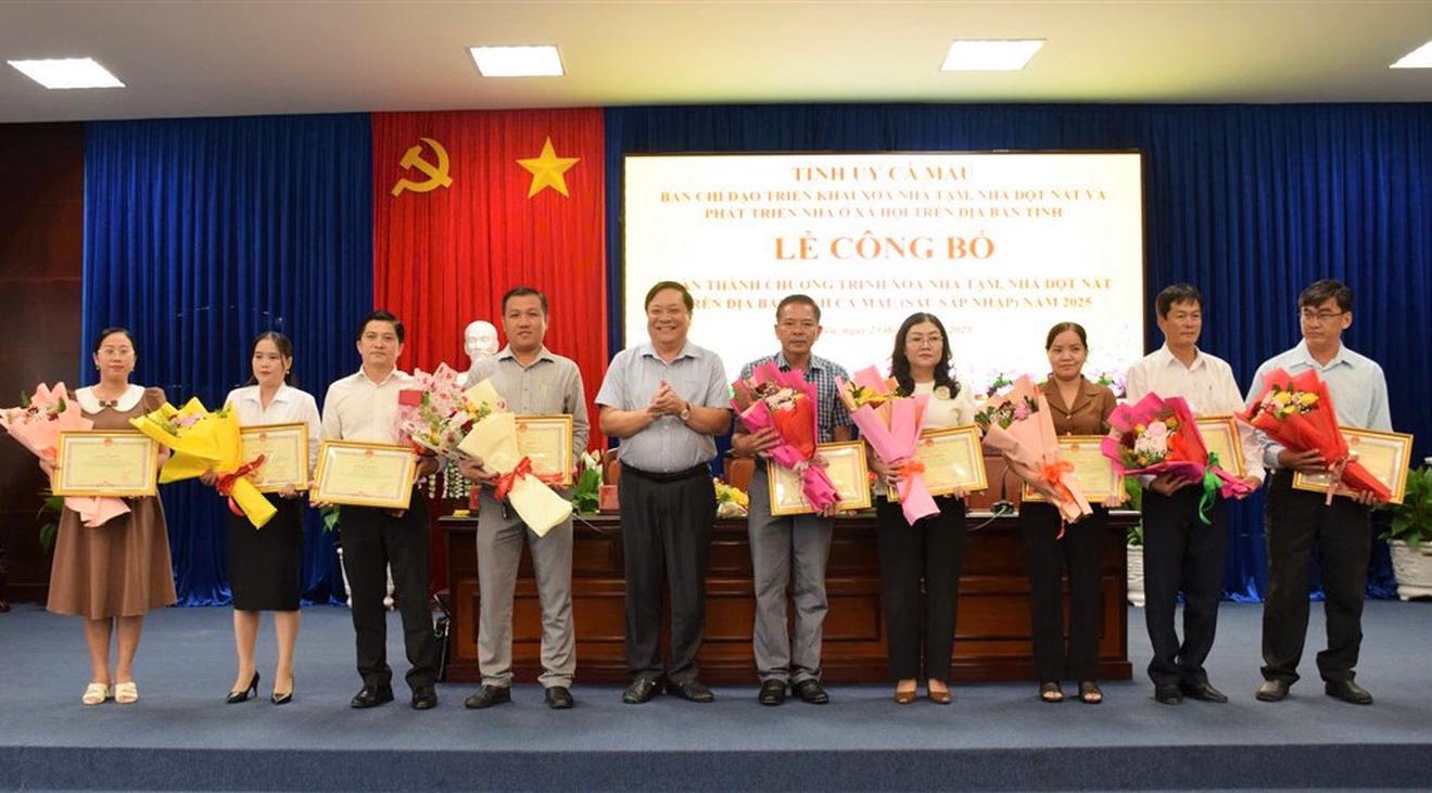 Dịp này, UBND tỉnh đã khen thưởng cho 11 tập thể có thành tích đóng góp, hỗ trợ kinh phí thực hiện công tác xóa nhà tạm, nhà dột nát trên địa bàn tỉnh; tặng Bằng khen cho 32 tập thể, 40 cá nhân có thành tích xuất sắc trong việc góp phần cùng tỉnh Cà Mau (sau sáp nhập) hoàn thành Chương trình xóa nhà tạm, nhà dột nát trên địa bàn tỉnh năm 2025.