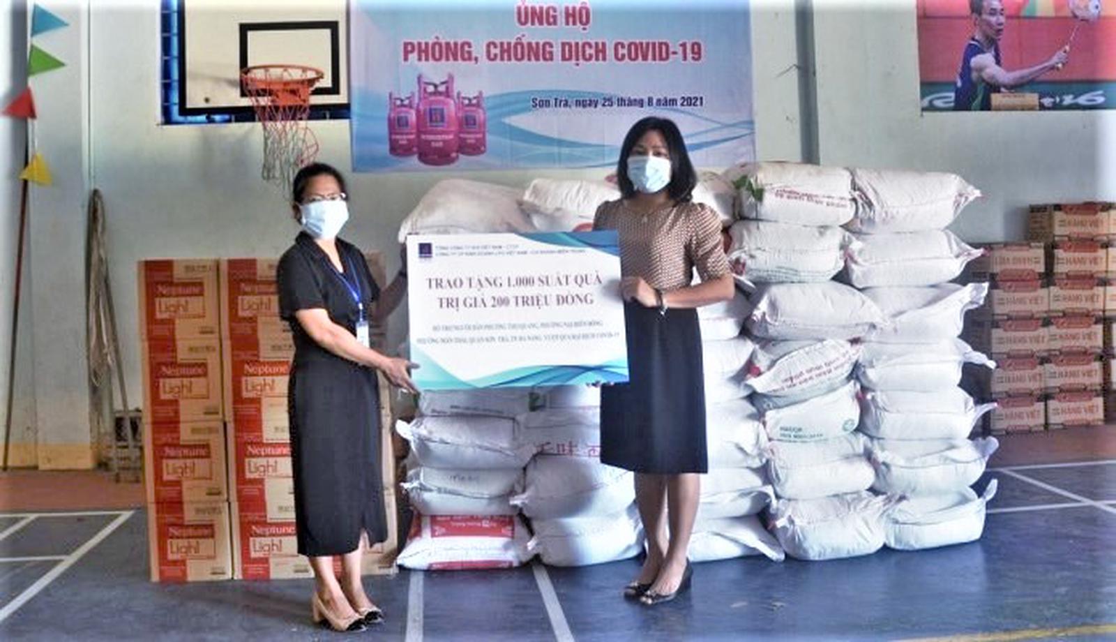 Công ty CP Kinh doanh LPG Việt Nam – Chi nhánh miền Trung đã trao tặng 1.000 suất quà có tổng trị giá 200 triệu đồng cho bà con nhân dân có hoàn cảnh khó khăn tại quận Sơn Trà, nơi thực hiện đợt “giãn cách đặc biệt” phòng chống dịch Covid-19 theo quyết định của Chủ tịch UBND TP Đà Nẵng. Mỗi suất quà trị giá 200.000 đồng, bao gồm gạo, dầu ăn, các thực phẩm cần thiết.