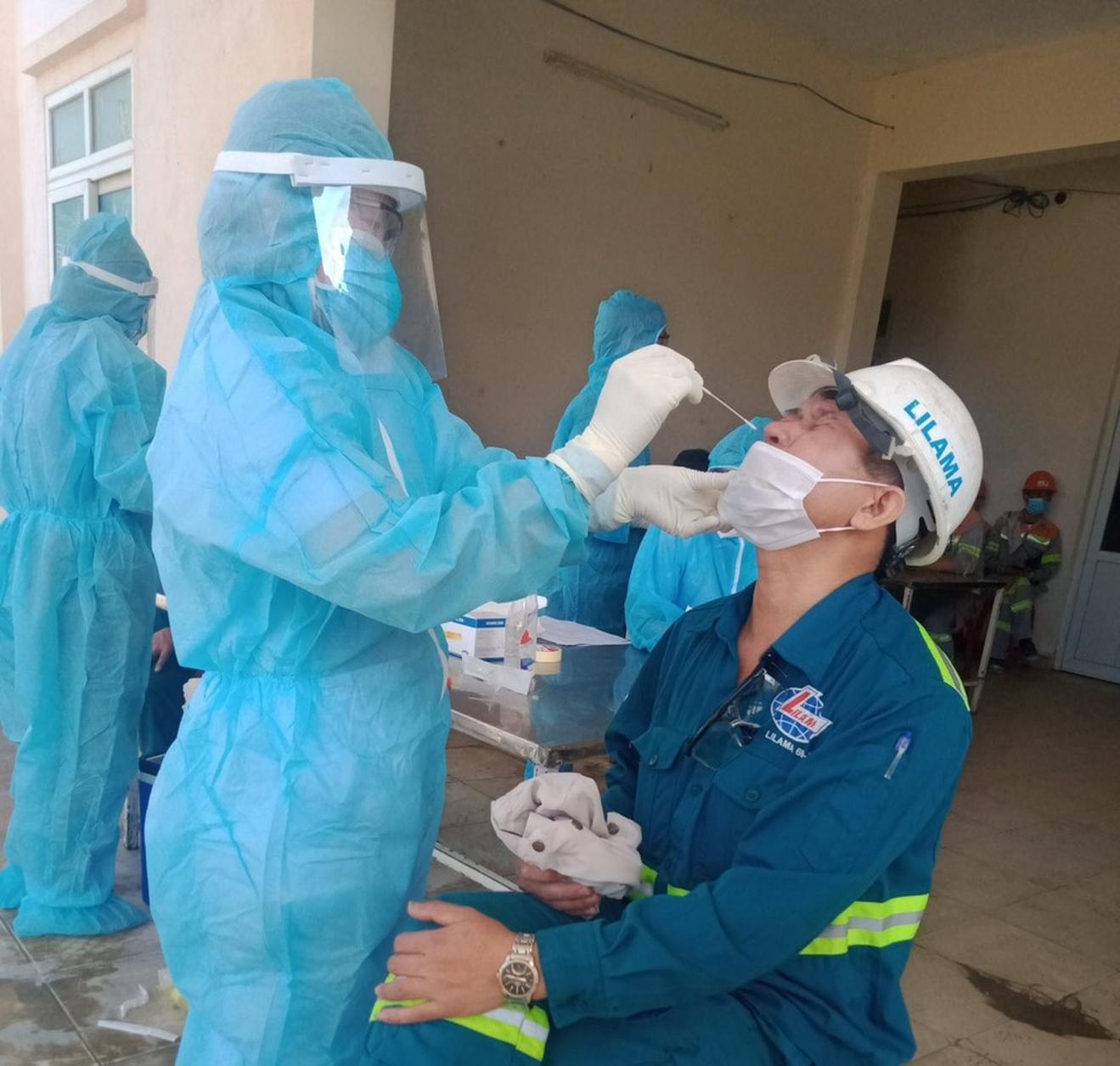 Xét nghiệm Covid-19 cho công nhân. Ảnh: P.T