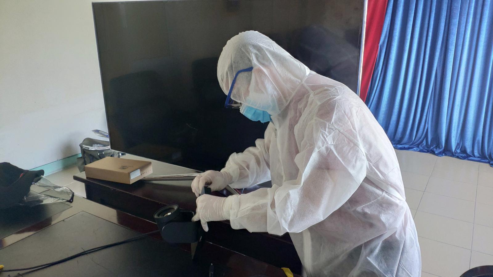 Nhân viên kỹ thuật Viettel lắp đặt mạng tại Bệnh viện Dã chiến Tiên Sơn