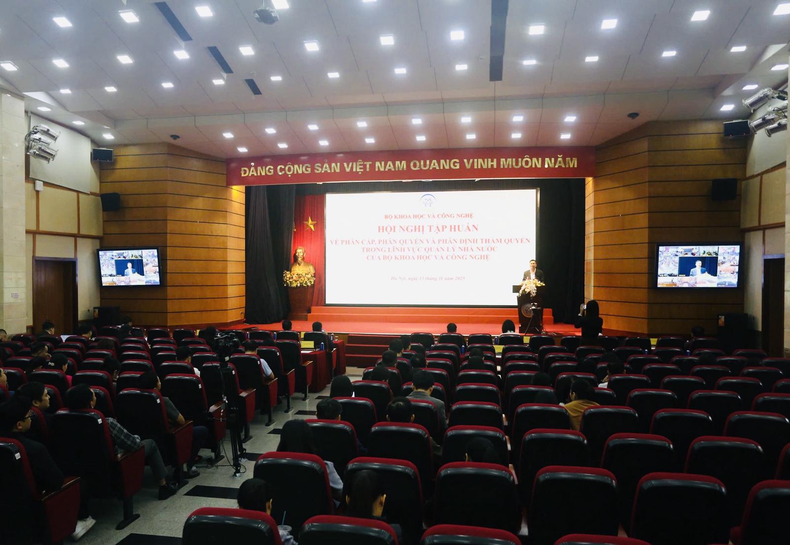 (Thanh tra) - Hội nghị tập huấn về phân cấp, phân quyền do Bộ Khoa học và Công nghệ đã diễn ra hôm nay (13/11), tại Hà Nội không chỉ phổ biến chính sách mà trở thành cuộc bàn bạc để thống nhất cùng hành động. Tại đây, lãnh đạo Bộ, các cục, vụ và hơn 30 địa phương cùng bàn cách “cầm tay chỉ việc” để dịch vụ công thông suốt.