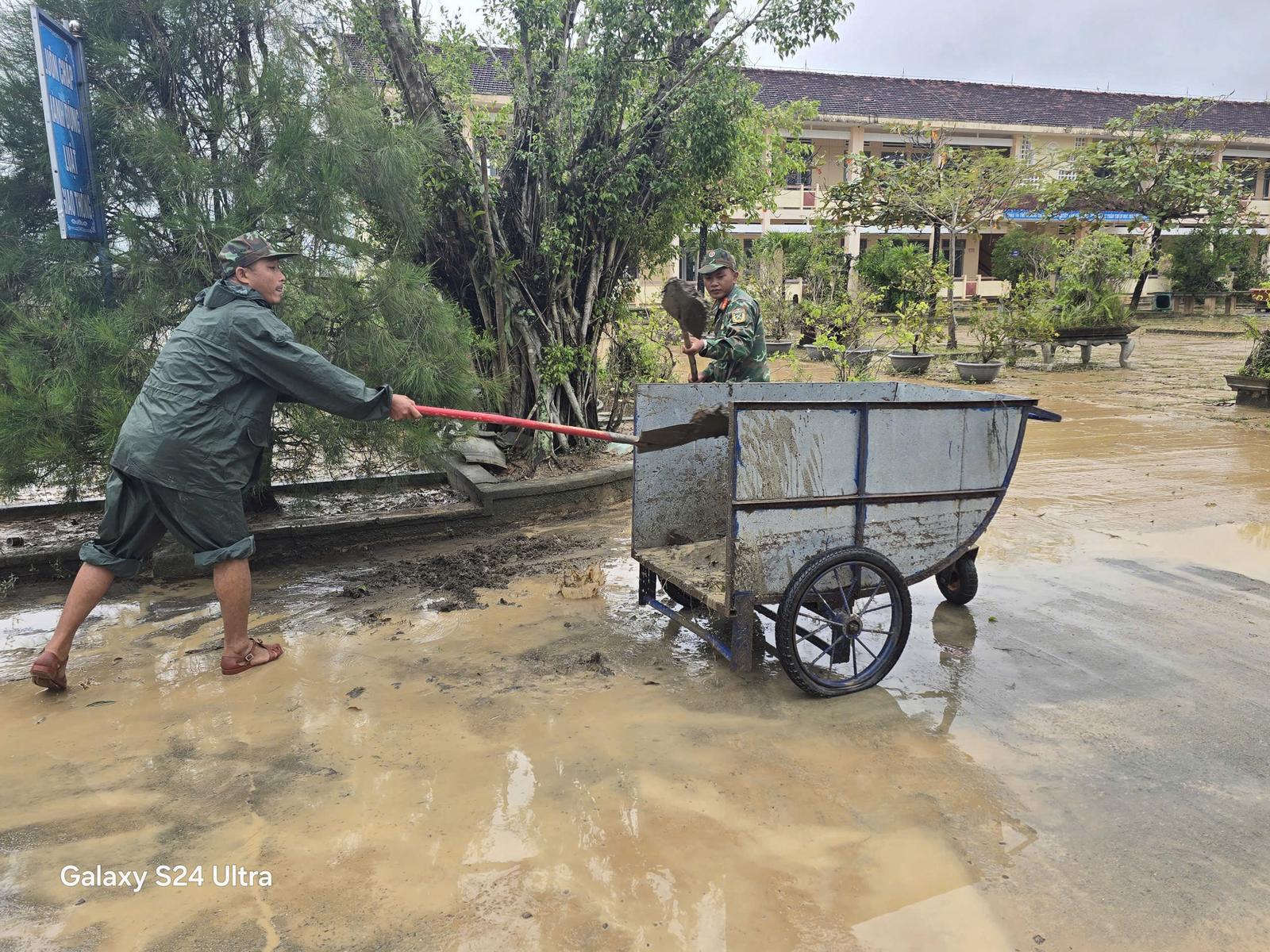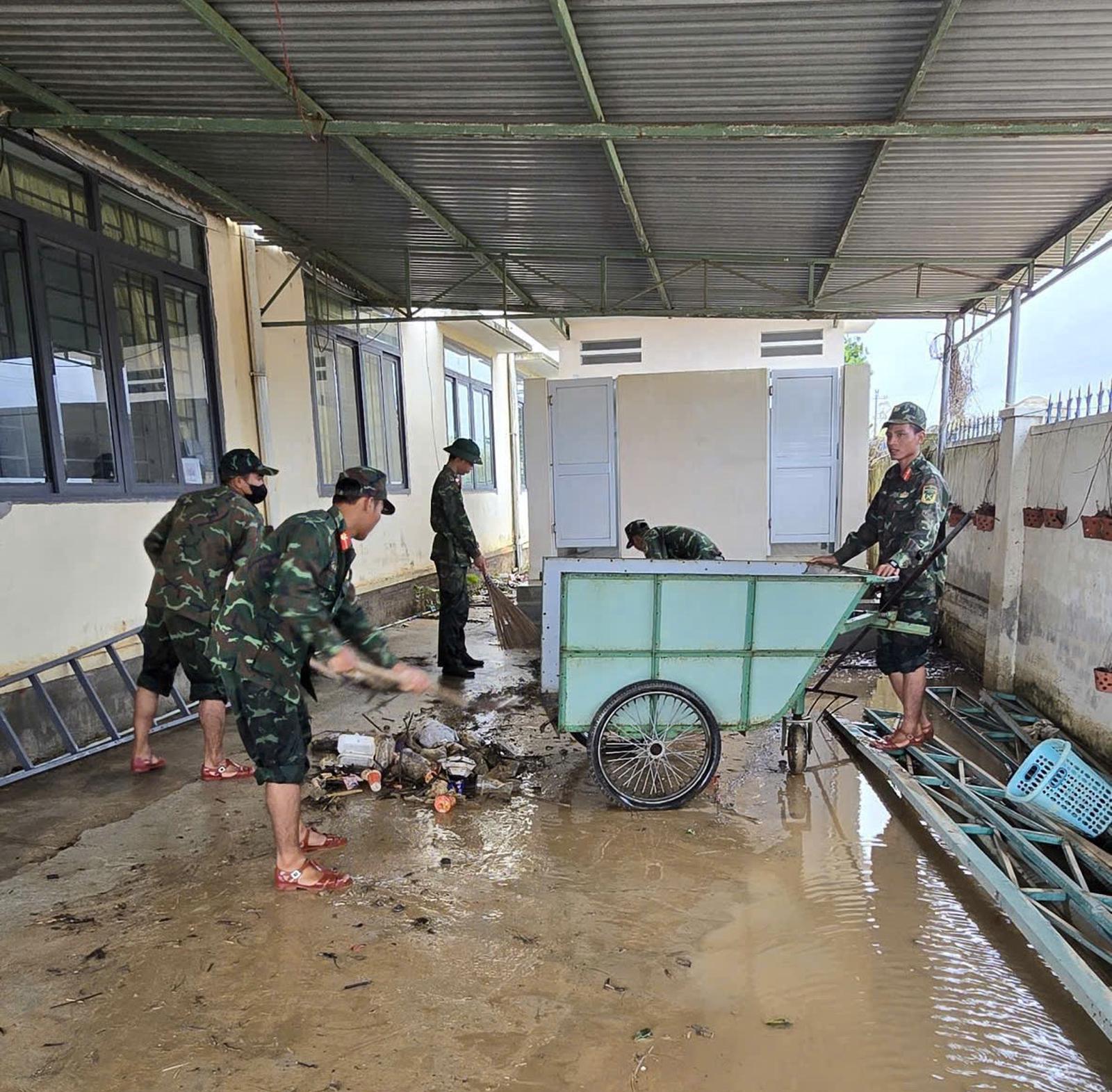 Khi mưa giảm và nước bắt đầu rút, lực lượng Trung tâm Huấn luyện Quân sự quốc gia 2 phối hợp với chính quyền địa phương tổ chức dọn bùn đất, vệ sinh nhà cửa, trường học; khơi thông các tuyến đường bị tắc nghẽn, hỗ trợ Nhân dân sớm ổn định lại sinh hoạt. Công tác ứng trực tiếp tục được duy trì với tinh thần “Đến sớm nhất – rời muộn nhất”, quyết tâm không để người dân vùng lũ đơn độc.