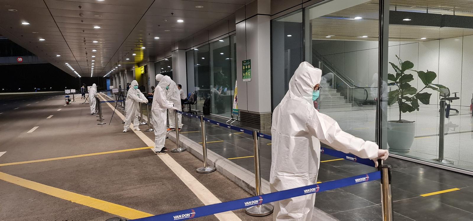 Sân bay Vân Đồn đã xây dựng quy trình với các biện pháp an toàn chống dịch ở mức cao nhất cho các chuyến bay trong nước, các chuyến bay giải cứu và chở chuyên gia. Đó là, siết chặt lại toàn bộ quy trình đón chuyến bay đặc biệt, kiểm tra thân nhiệt toàn bộ hành khách bằng hệ thống nhận diện AI (trí tuệ nhân tạo) cảnh báo việc không mang khẩu trang, kiểm tra việc khai báo y tế và làm tất cả các thủ tục nhập cảnh, hải quan tại khu vực riêng biệt bên ngoài nhà ga. Hành khách được hướng dẫn sát khuẩn tay, đeo khẩu trang và giữ khoảng cách an toàn phòng dịch. Hành lý xách tay và hành lý ký gửi được khử trùng bằng chất khử trùng đặc biệt. Khu vực nhà ga và luồng di chuyển của khách được phun khử trùng, khử khuẩn. Mọi CBNV tham gia đón chuyến bay phải tuân thủ tuyệt đối quy tắc phòng dịch: Đeo khẩu trang, mặc đồ bảo hộ theo tiêu chuẩn, đảm bảo khoảng cách an toàn với khách hàng và thực hiện khử trùng liên tục.