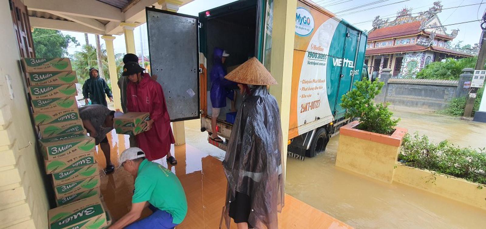Bên cạnh đó, Tổng Công ty CP Bưu chính Viettel (Viettel Post) đã huy động phương tiện, nhân lực, tổ chức vận chuyển miễn phí nhu yếu phẩm (gạo, mì tôm, các vật dụng vệ sinh cá nhân...) tới tất cả những khu vực bị ảnh hưởng thiên tai.