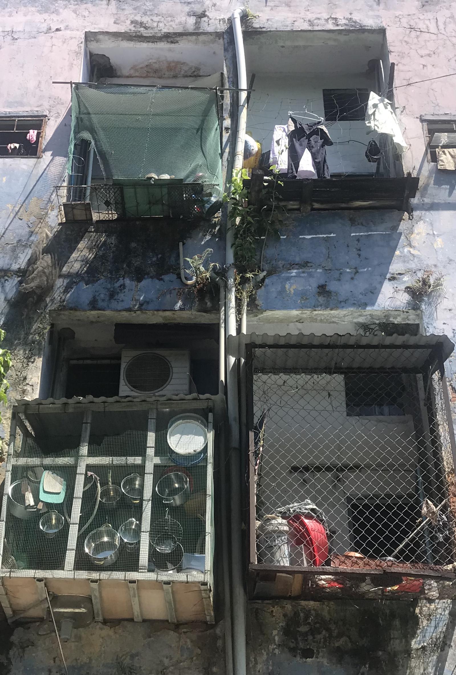 Do đây là chung cư với quy mô nhỏ, thấp tầng và diện tích phòng ở chật chội (mỗi căn chỉ trên dưới 30m2), nên các hộ sinh sống trên các tầng đều cơi nới nền xây thêm tường hoặc hàn khung sắt quay tôn phía sau căn hộ để mở rộng diện tích sinh hoạt của mình.
