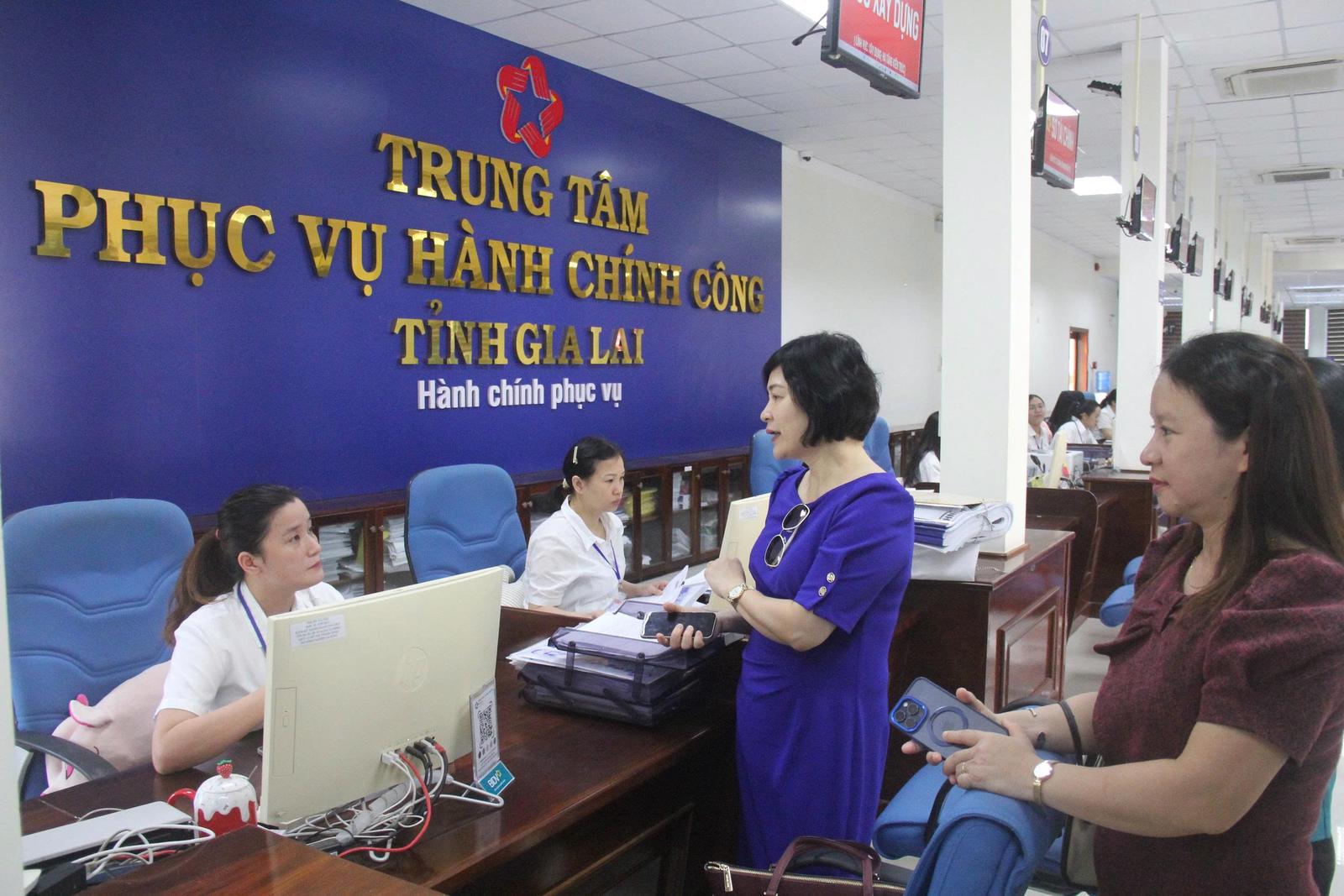 Đoàn công tác của Bộ KH&CN khảo sát tại Trung tâm phục vụ hành chính công tỉnh Gia Lai. Ảnh: M.H