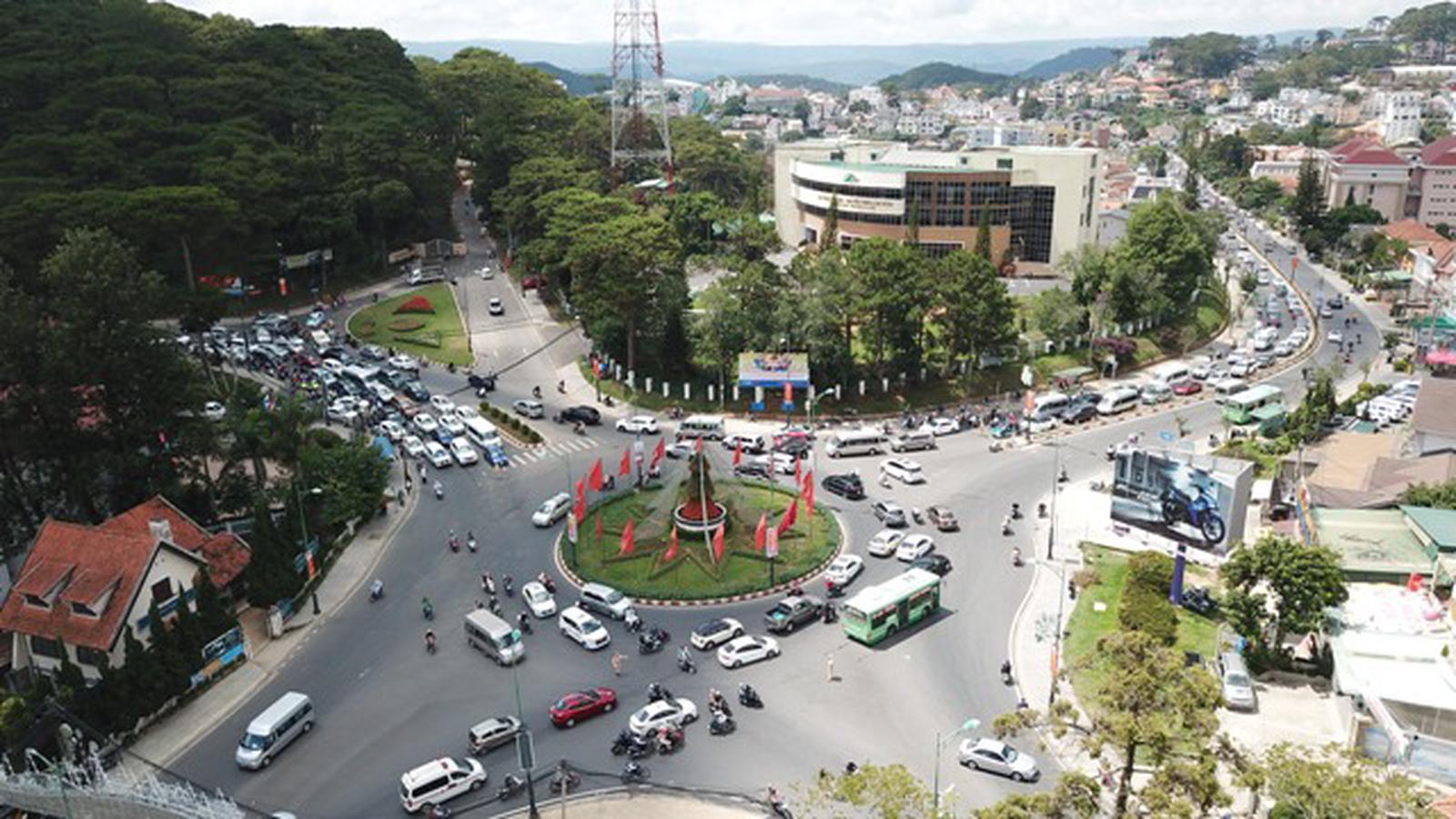 Phương tiện giao thông đổ về TP Đà Lạt tăng đột biến tại vòng xoay chợ Đà Lạt. Ảnh: Thanh Chương