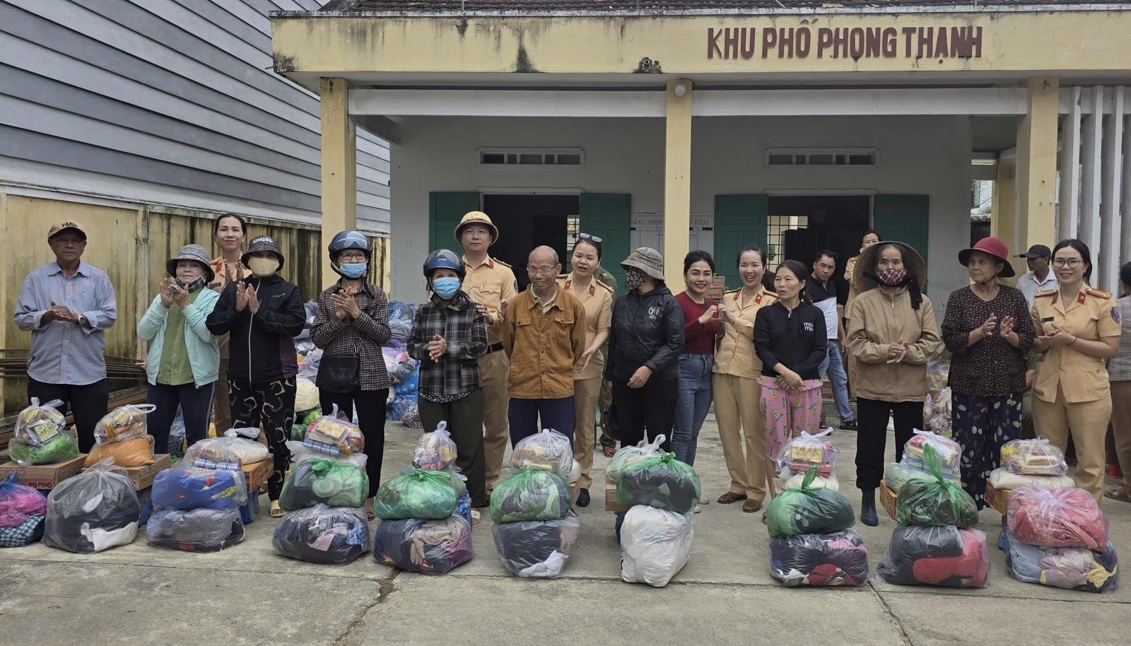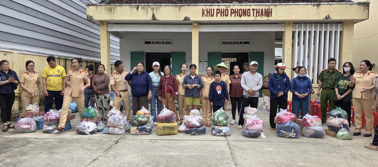 Tại thôn Phong Thạnh, xã Tuy Phước, tỉnh Gia Lai, đoàn đã trao 100 suất quà gồm 1 thùng mì tôm, bánh mì, nước uống, chăn, 10 bộ quần áo, 5kg gạo, lương khô và các loại bánh.