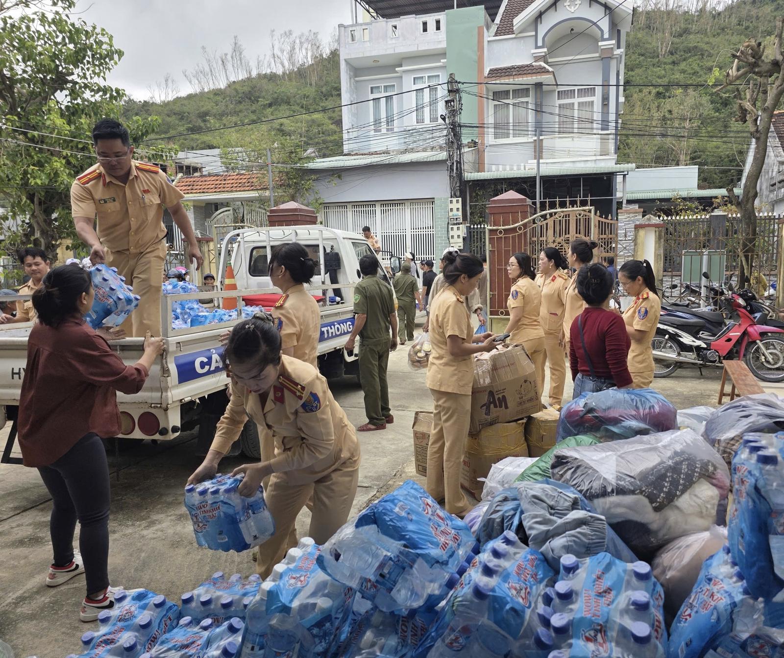 Phòng CSGT Công an tỉnh Gia Lai đã tổ chức đoàn công tác đến thăm hỏi và trao quà hỗ trợ các hộ dân bị ảnh hưởng bởi mưa lũ. Ảnh: BT