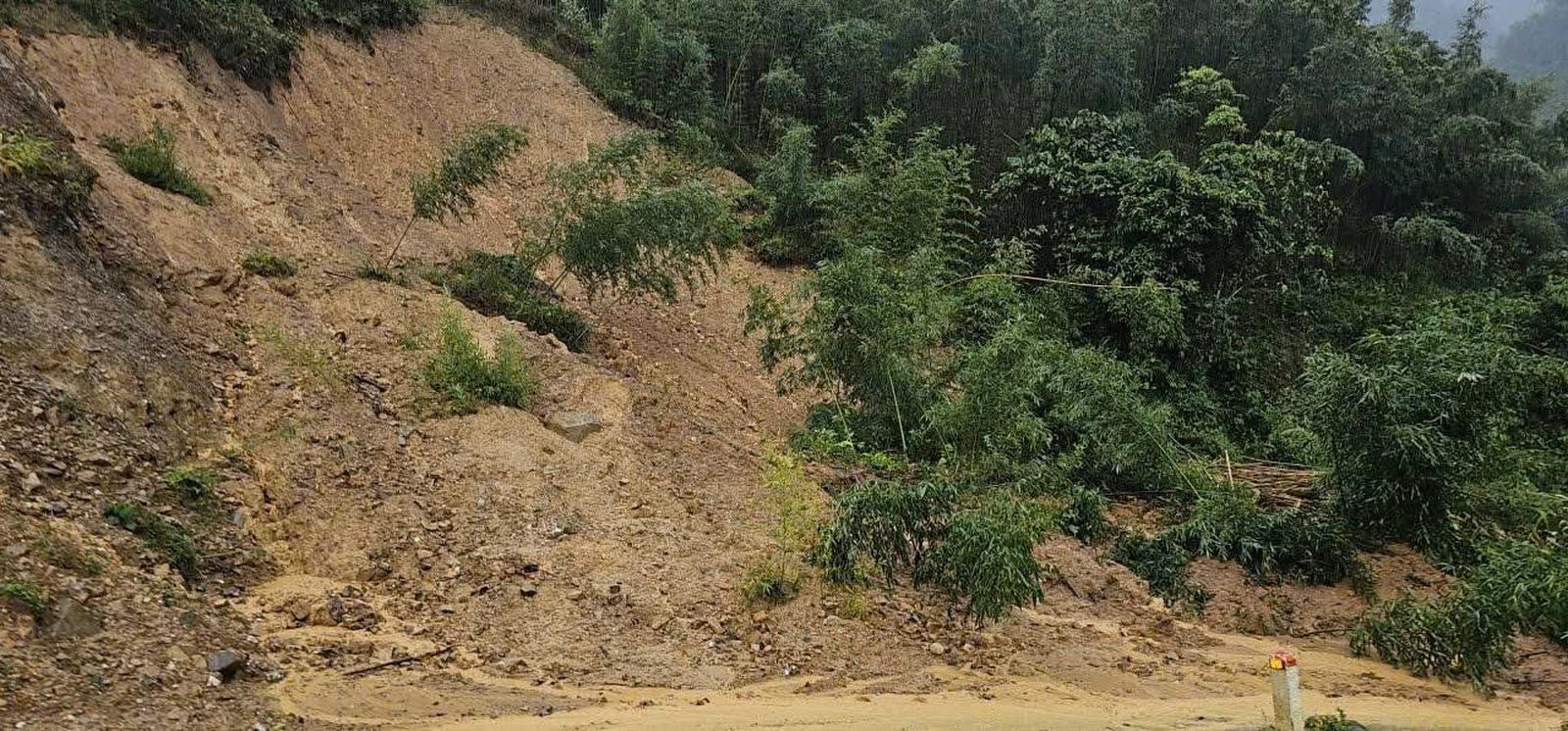 Tuyến đường từ Quốc lộ 34 vào xã Phan Thanh sạt lở, phương tiện giao thông không thể lưu thông. Ảnh: Báo Cao Bằng