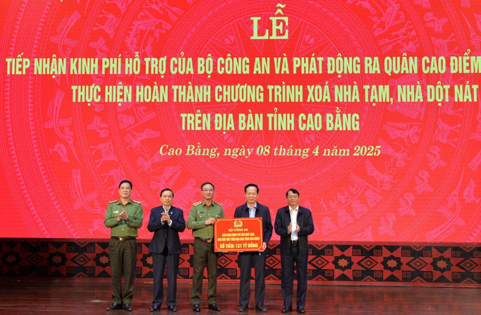 (Thanh tra) - Ngày 8/4/2025, Bộ Công an phối hợp với tỉnh Cao Bằng tổ chức lễ tiếp nhận kinh phí hỗ trợ của Bộ Công an và phát động ra quân cao điểm 180 ngày thực hiện hoàn thành xóa nhà tạm, nhà dột nát (XNT, NDN) trên địa bàn tỉnh.