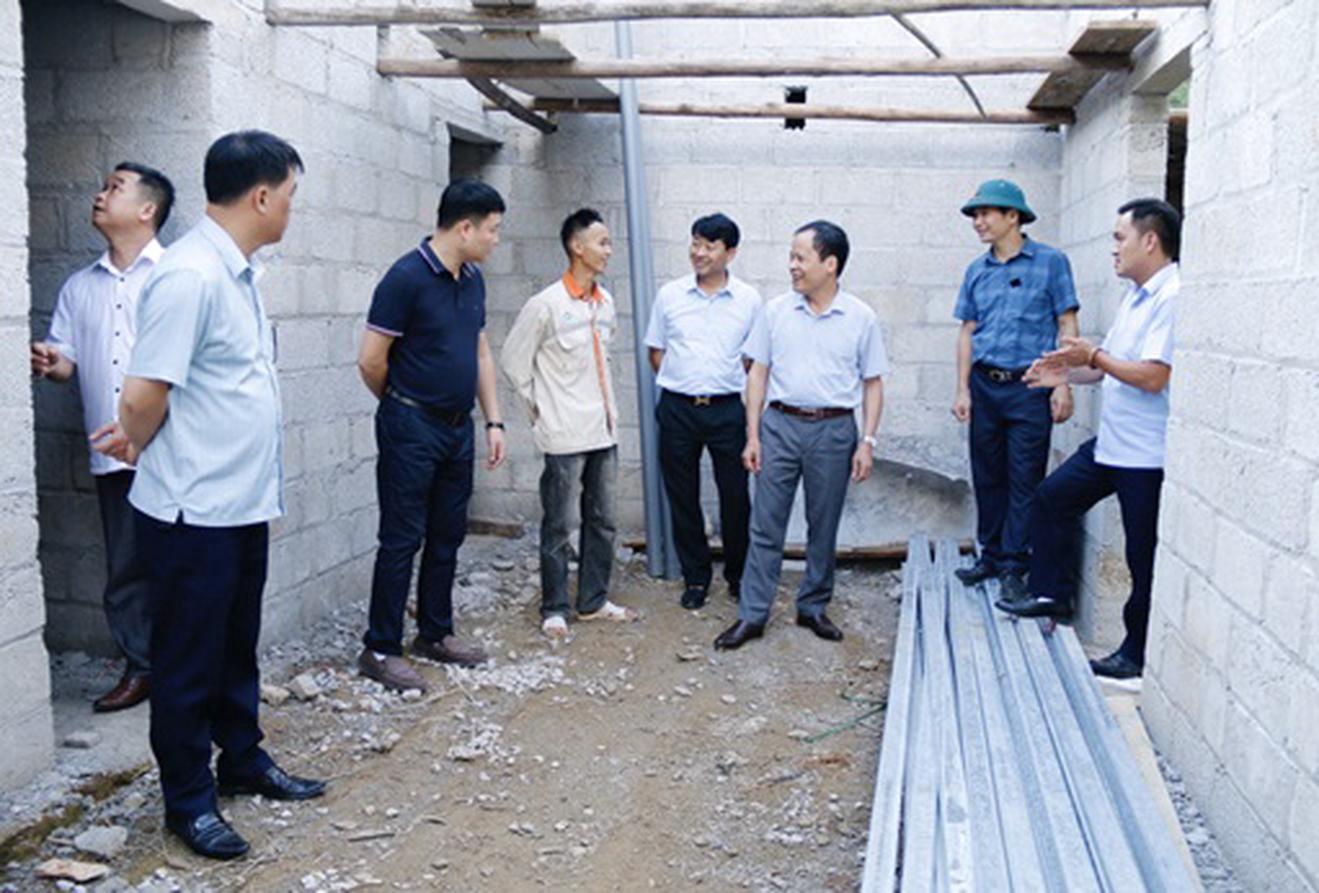 Lãnh đạo tỉnh Cao Bằng kiểm tra chương trình xoá nhà tạm, nhà dột nát tại huyện Hoà An. Ảnh: BCB