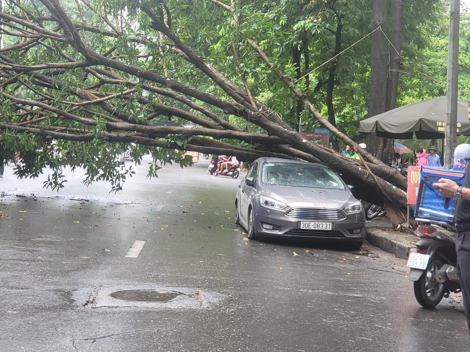 Người dân tại hiện trường cho biết, vào thời điểm trên, xe ô tô 4 chỗ biển kiểm soát 30E 08.331 đang đỗ bên lề đường theo hướng về đường Lê Văn Lương, bất ngờ một cây xanh bật gốc đè ngang thân xe. Rất may, không có thiệt hại về người.
