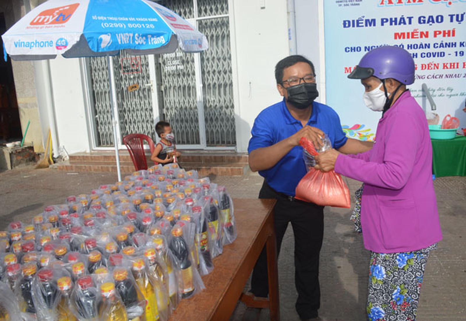 Cây "ATM gạo” đầu tiên tại Sóc Trăng phát gạo hỗ trợ người nghèo. Ảnh: XC