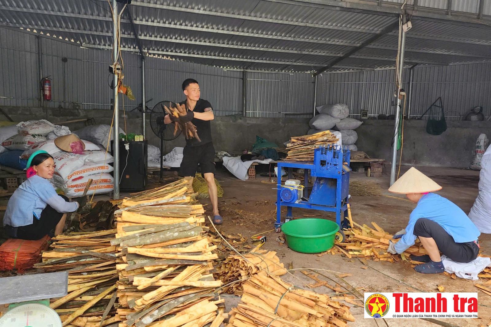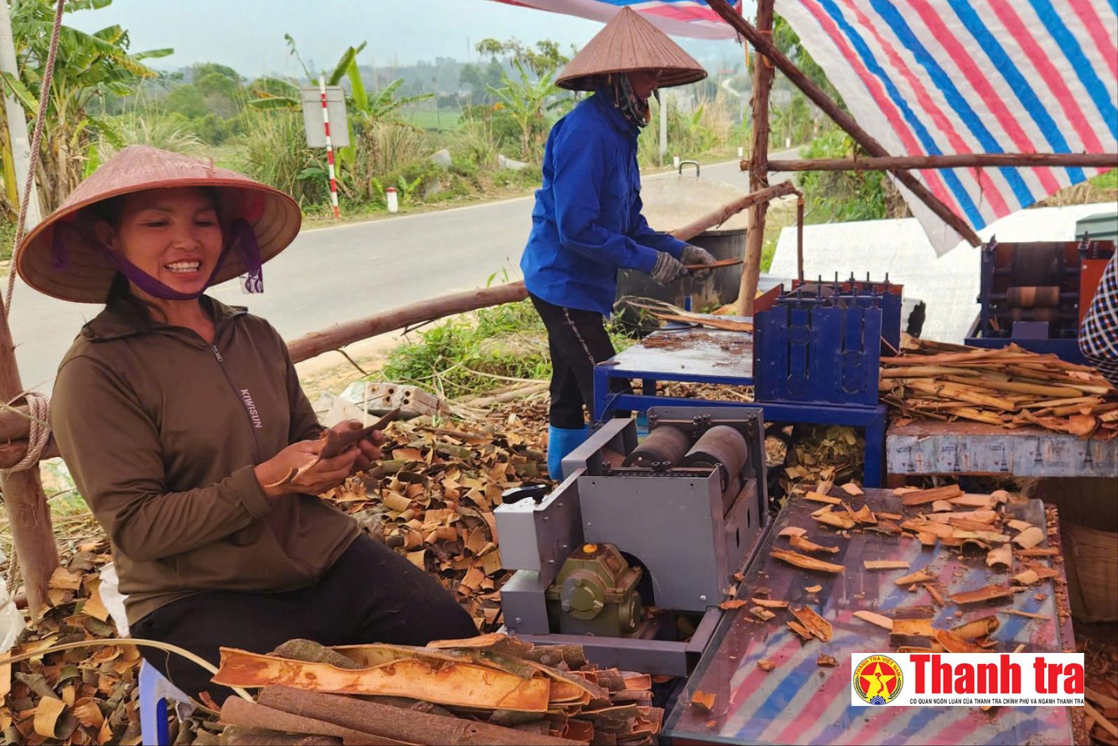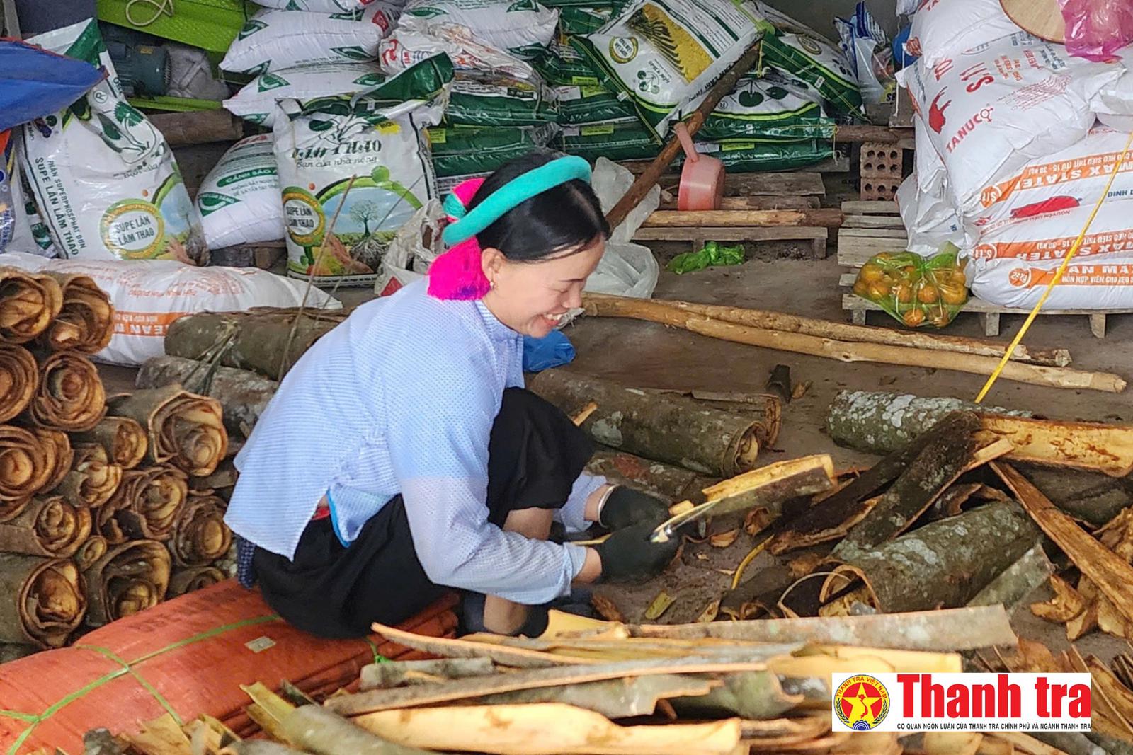 Tại các xã miền núi, phụ nữ dân tộc… là lực lượng chủ lực trong khâu bóc, phơi và sơ chế quế. Nghề quế không chỉ giúp tăng thu nhập mà còn tạo việc làm thường xuyên cho lao động nông thôn. Ảnh: Hà Thành